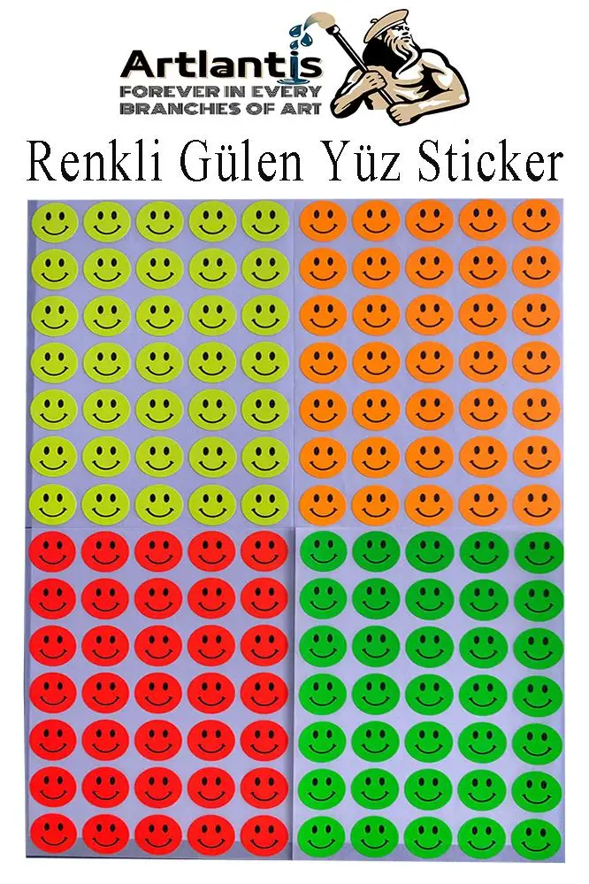 Ürün Adı: Gülen Yüz Sticker 140 lı 1 Paket 19 mm Fosforlu Turuncu Sarı Pembe Yeşil Gülen Yüz Etiket Çıkartma Okul Etkinlik