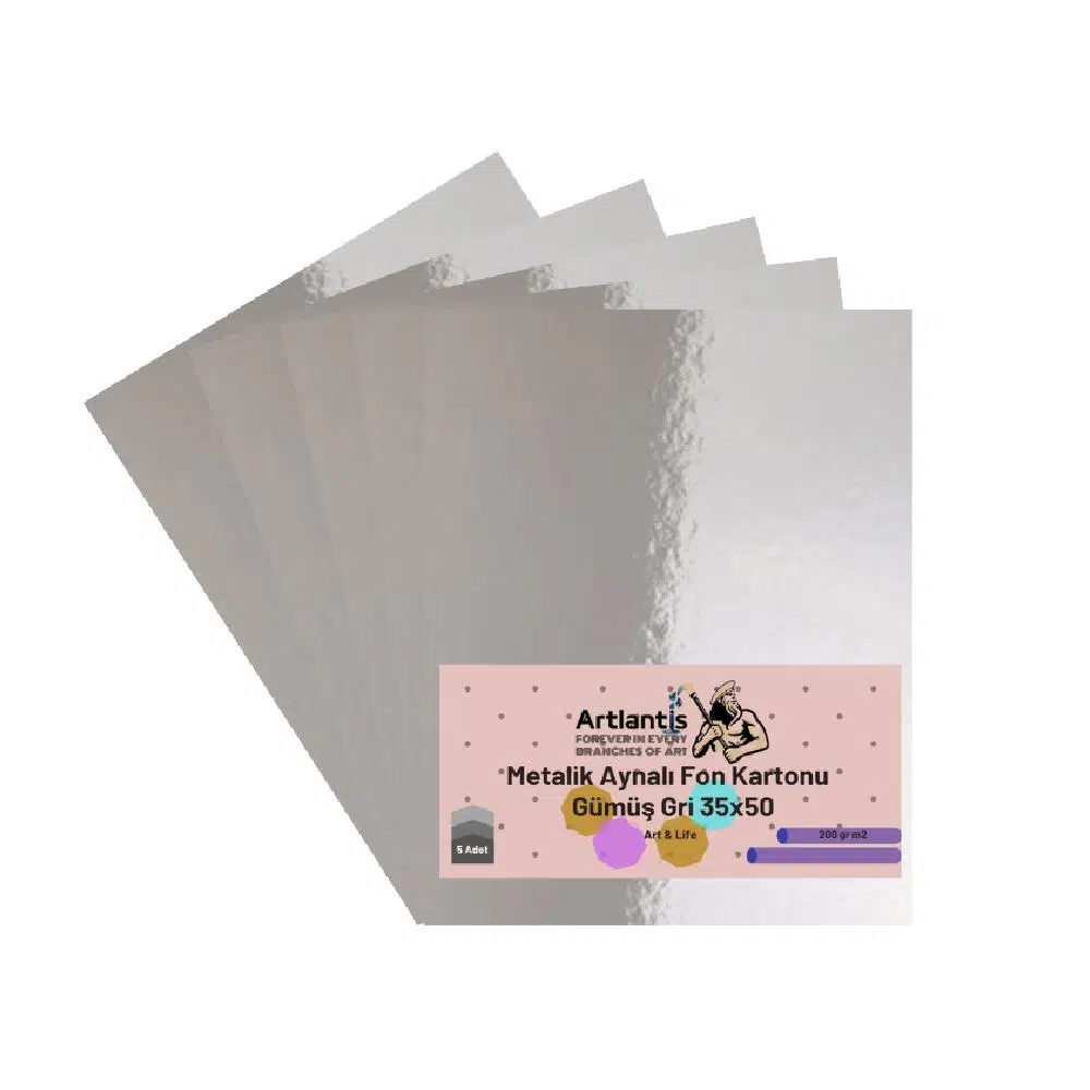 Ürün Adı: Gümüş Gri Artlantis Metalik Aynalı Fon Kartonu 5 Adet