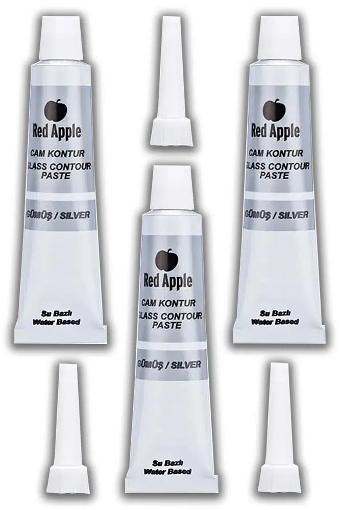 Ürün Adı: Gümüş Gri Kontür Boyası 20 ml 3 Adet Red Apple Cam Vitray Boyası Kontur Boyası Ana Hatları Çizme Sanatsal Hobi