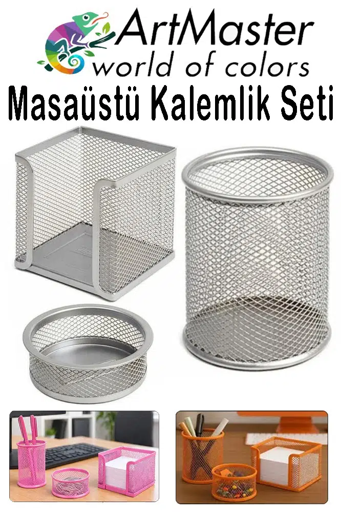 | Etiketler | Gümüş Gri Masaüstü Fileli Kalemlik Seti 3 Parça 1 Paket 3 lü Masa Üstü Düzenleyici Kalemlik Küp Notluk Ataşlık |
