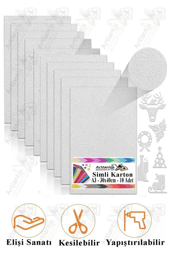 | Etiketler | Gümüş Gri Simli Karton A3 30x40 cm 10 lu 1 Paket Simli Fon Kartonu Parıltılı Kağıt Anasınıfı Kreş Etkinlik Proje |