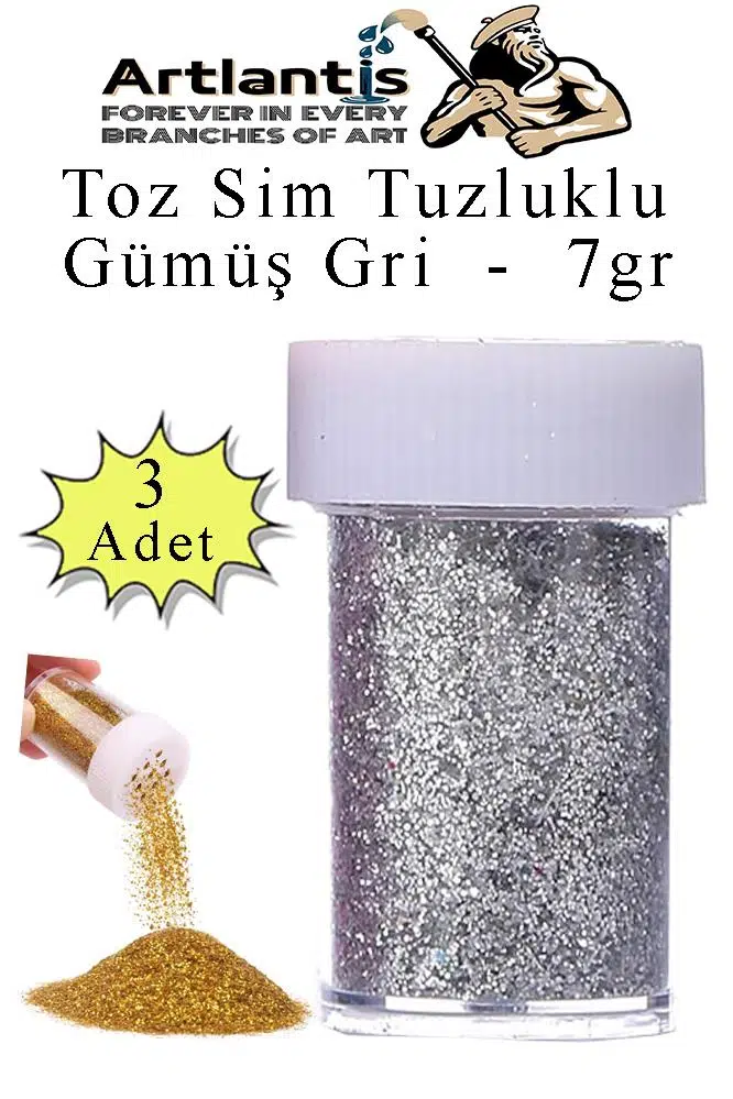 Ürün Adı: Gümüş Gri Toz Sim Tuzluklu 7 gr 3 Adet Renkli Toz Sim Epoksi Reçine Okul Etkinlik Dekarasyon Slime