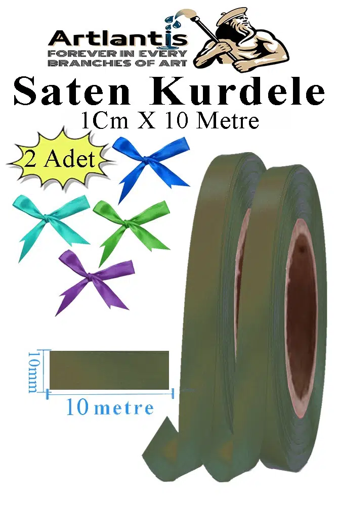 Ürün Adı: Haki Yeşil Kurdele Saten 1 Cm 10 Metre 2 Adet Saten Kurdela Parlak Hediye ve Süsleme Şeridi Süs Paketleme Çiçek Saç El