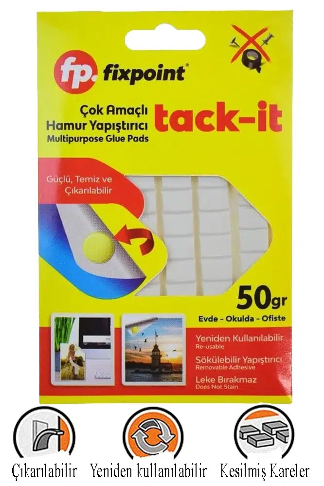| Etiketler | Hamur Yapıştırıcı Tack-it 50gr 1 Paket Fixpoint 65 Parça Macun Sakız Yapıştırıcı Takıt Çerçeve Afiş Duvar İz Bırakmaz |