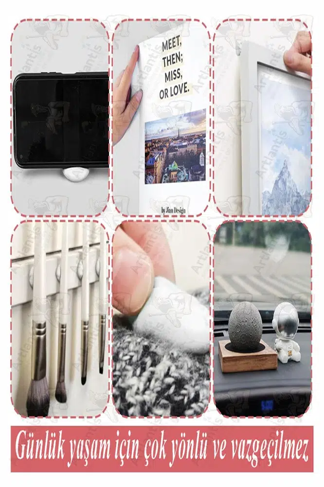 Yapışkan hamur sakız macun, resim, poster, not, süs, hatırlatma, çocuk sanat eseri ve parti dekorasyonlarını asmak için idealdir. Cam veya kırılgan nesneler için uygun değildir. Sanatsal çalışmalarınızı veya tırnak sanatınızı sabitlemek için mükemmel bir araçtır. Temiz duvarınızda delik açmaktan kurtulun. Hayal gücünüzü ve yaratıcılığınızı harekete geçirerek istediğiniz gibi kullanın.
