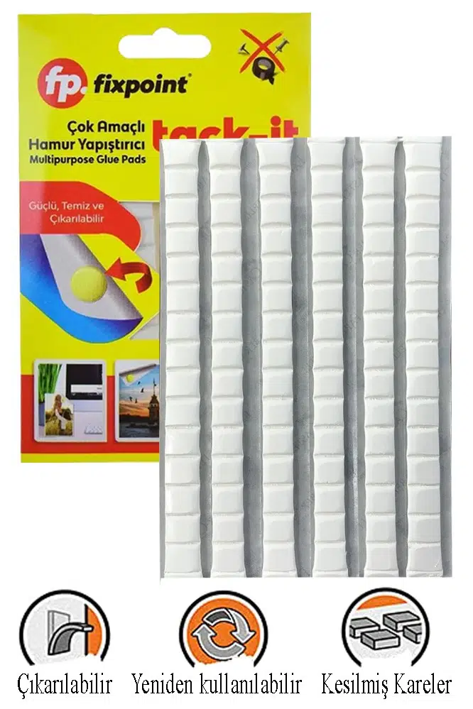 | Etiketler | Hamur Yapıştırıcı Tack-it 50gr 1 Paket Fixpoint 65 Parça Macun Sakız Yapıştırıcı Takıt Çerçeve Afiş Duvar İz Bırakmaz |
