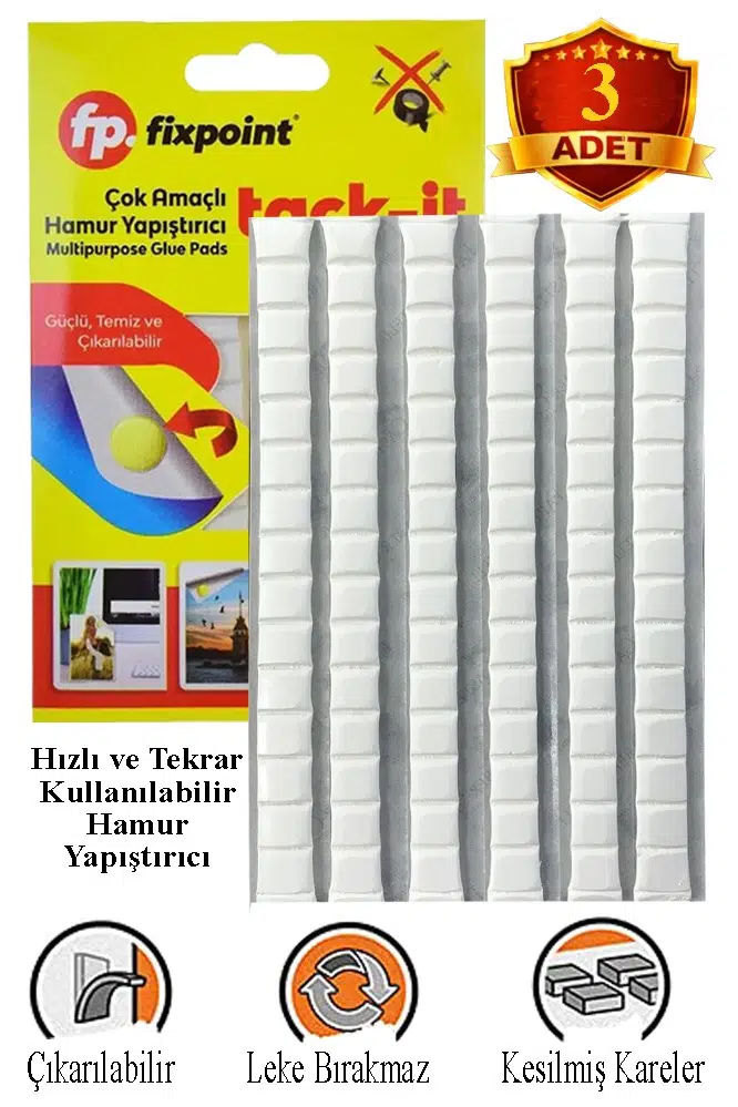 | Etiketler | Hamur Yapıştırıcı Tack-it 50gr 3 Paket Fixpoint 65 Parça Macun Sakız Yapıştırıcı Takıt Çerçeve Afiş Duvar İz Bırakmaz |