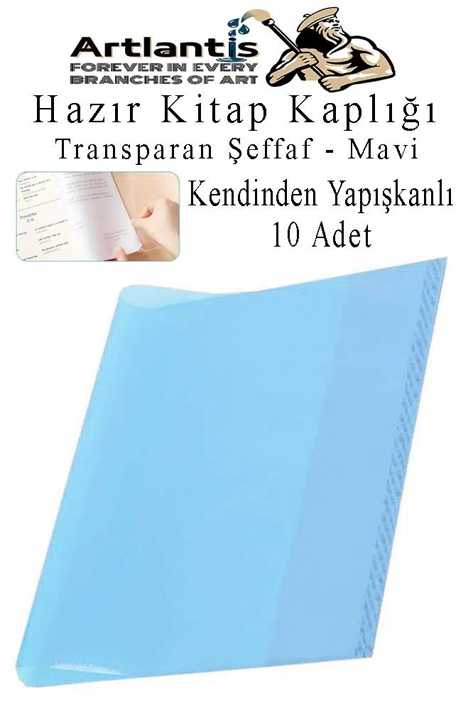 Ürün Adı: Hazır Kitap Kaplığı Şeffaf Buzlu Mavi 10 Adet 1 Paket Cırtlı Ayarlanabilir Kendinde Yapışkanlı Kaplık Okul Sınıf