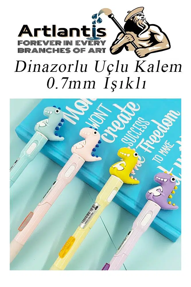Ürün Adı: Işıklı Dinazor Uçlu Kalem Seti Pembe 0.7 mm 1 Paket Dinazor Başlıklı Versatil Kalem Süslü Silikonlu Hediyelik Kalem