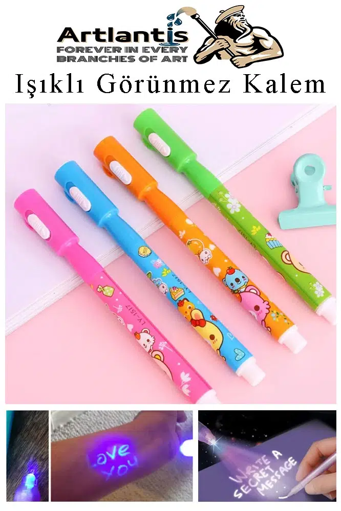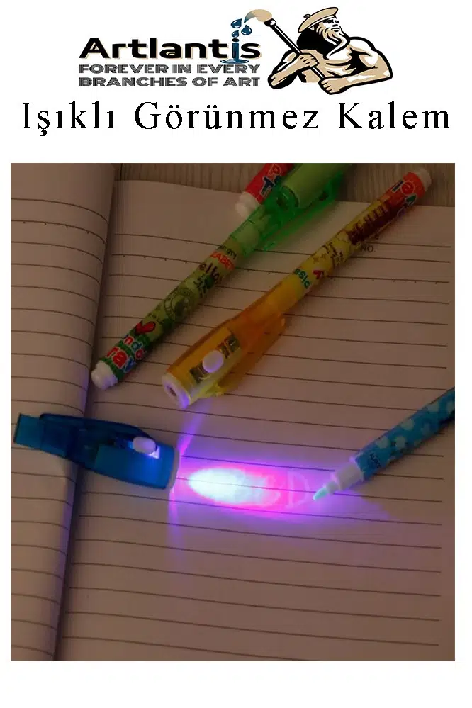 Ürün Adı: Işıklı Görünmez Kalem 4 Adet Sihirli Kalem Işıklı Uv Mavi Işıklı Kalem Ly-1517 Keçe Uçlu