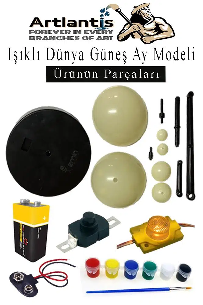 Ürün Adı: Işıklı Güneş Dünya Ay Modeli 1 Paket Led Işıklı Gezegen Maketi Boya Fırça Eğitici Maket Deney Seti Plastik Güneş Sistemi