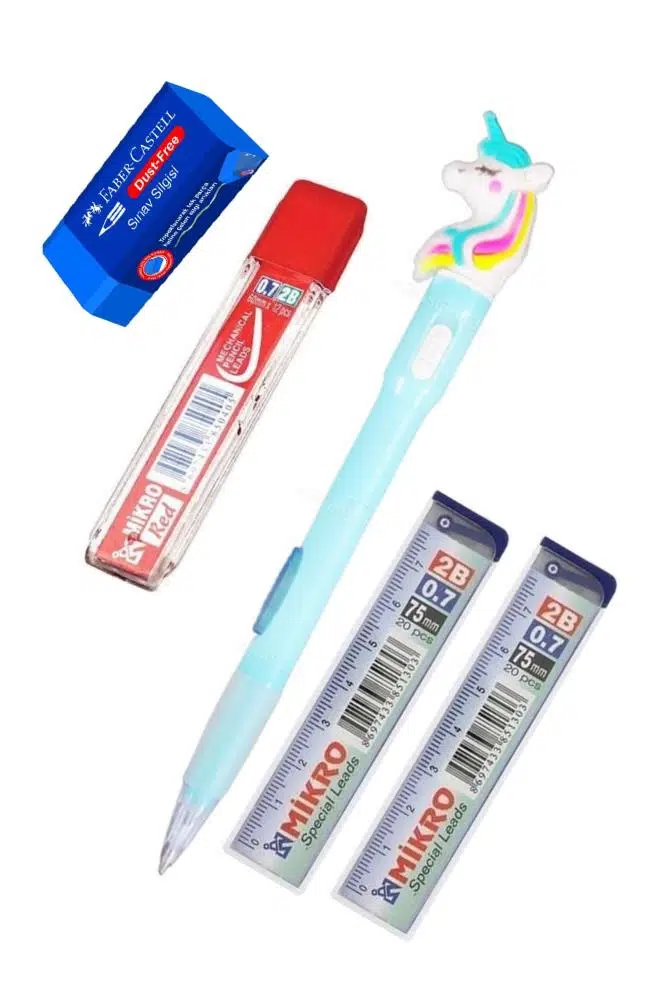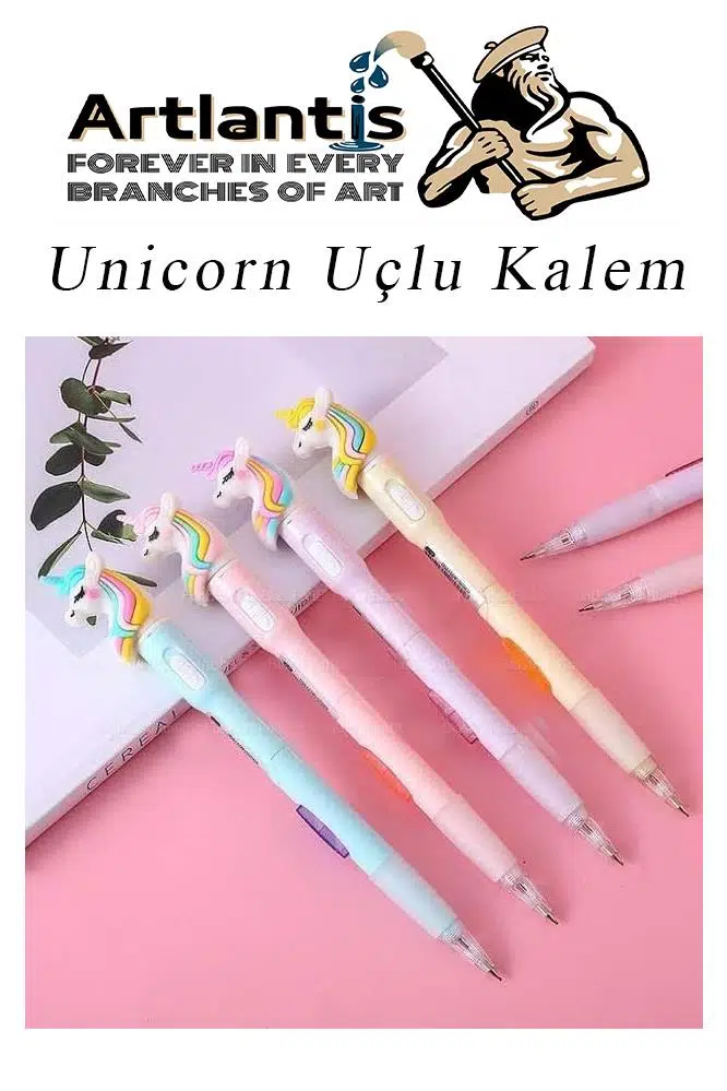 Ürün Adı: Işıklı Unicorn Uçlu Kalem Seti Mavi 0.7 mm 1 Paket Unicorn Başlıklı Versatil Kalem Süslü Silikonlu Hediyelik Kalem