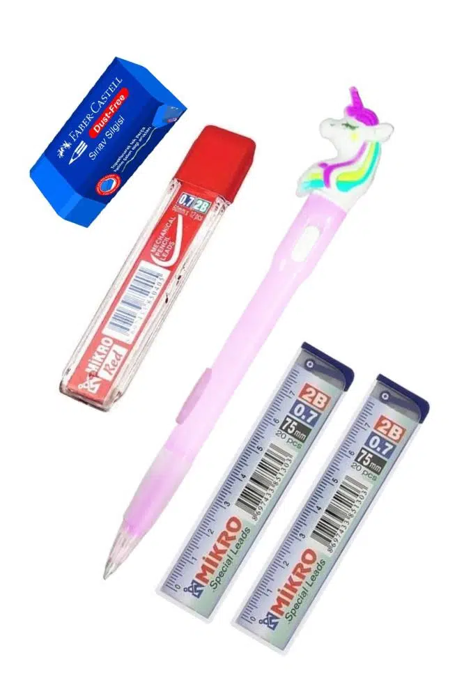 Ürün Adı: Işıklı Unicorn Uçlu Kalem Seti Pembe 0.7 mm 1 Paket Unicorn Başlıklı Versatil Kalem Süslü Silikonlu Hediyelik Kalem
