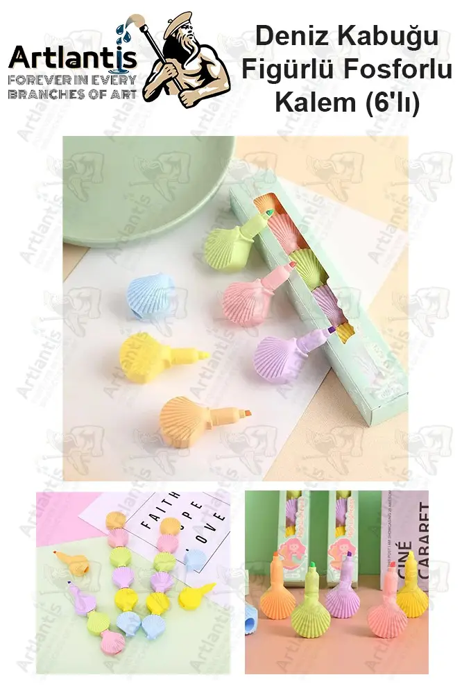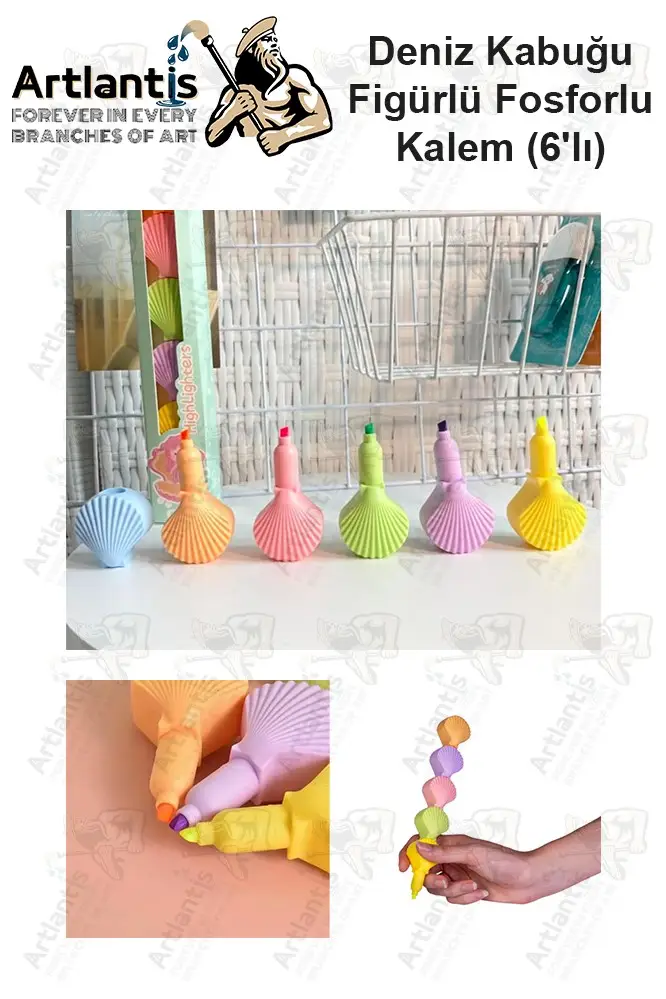 Ürün Adı: İstiridye Fosforlu Kalem Yumurtlayan 1 Paket 6 Renk Deniz Kabuğu Figürlü İşaret Kalemi Mini 6 lı Fosforlu Kalem