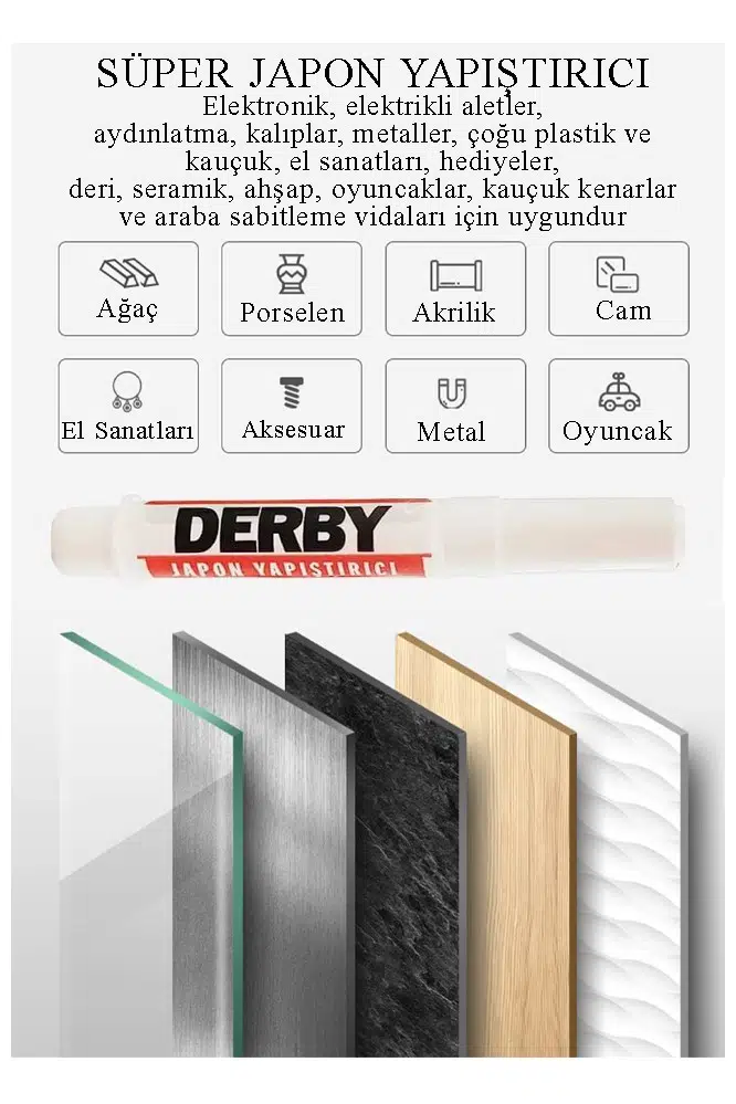 Ürün Adı: Japon Yapıştırıcısı Derby 1 Adet Mini Parmak Japon Yapıştırıcı Kuvvetli Hızlı Yapıştırıcı 1.5 Gr 1 Adet