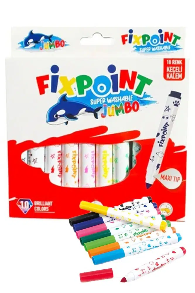 Ürün Adı: Jumbo Keçeli Kalem 10 Renk 1 Paket Fixpoint Kalem Seti Keçeli Kalem Seti Yıkanabilir Zararsız Maxi