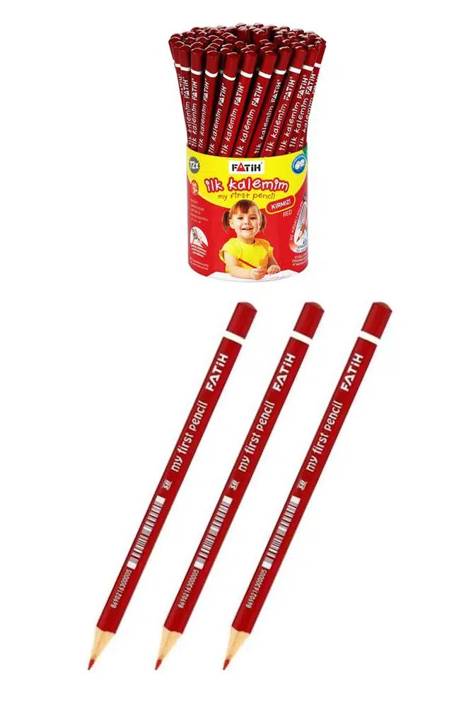 Ürün Adı: Jumbo Kırmızı Kalem 3 Adet Kırmızı Başlık Kalemi Üçgen Kırmızı Renk Kurşun Kalem İlk Kalemim