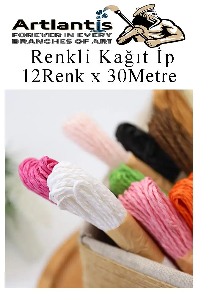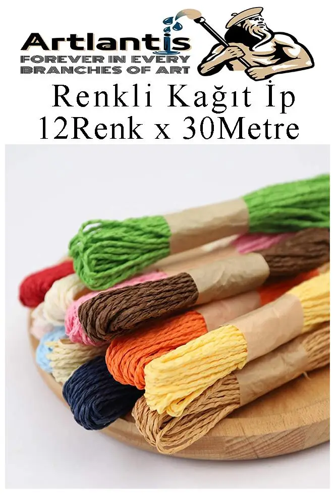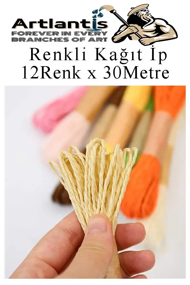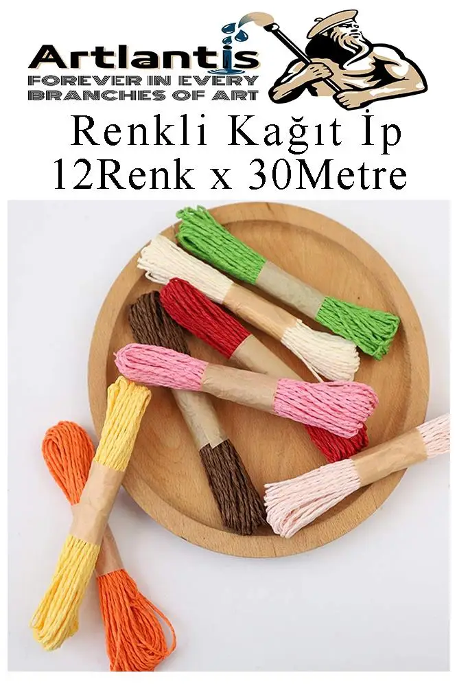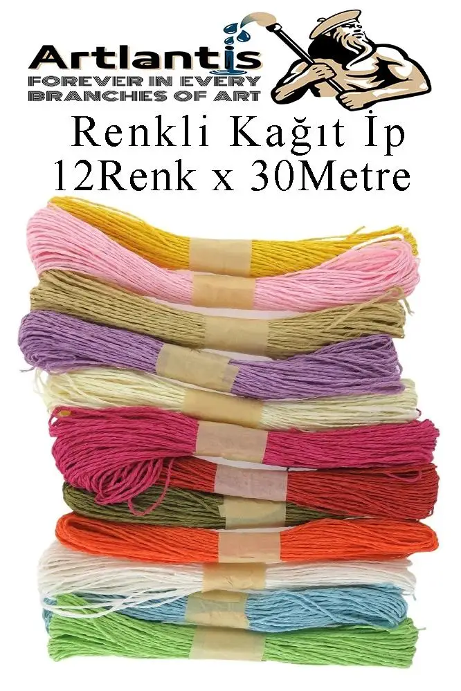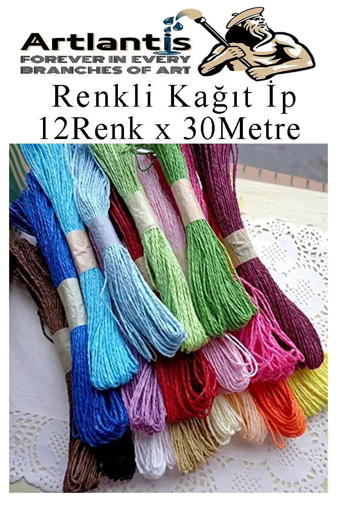 Ürün Adı: Kağıt İp 12 Renk 1 Paket Kraft Kağıt İp 12 li 30 Metre Hobi Hediye Paketleme Kağıt İp
