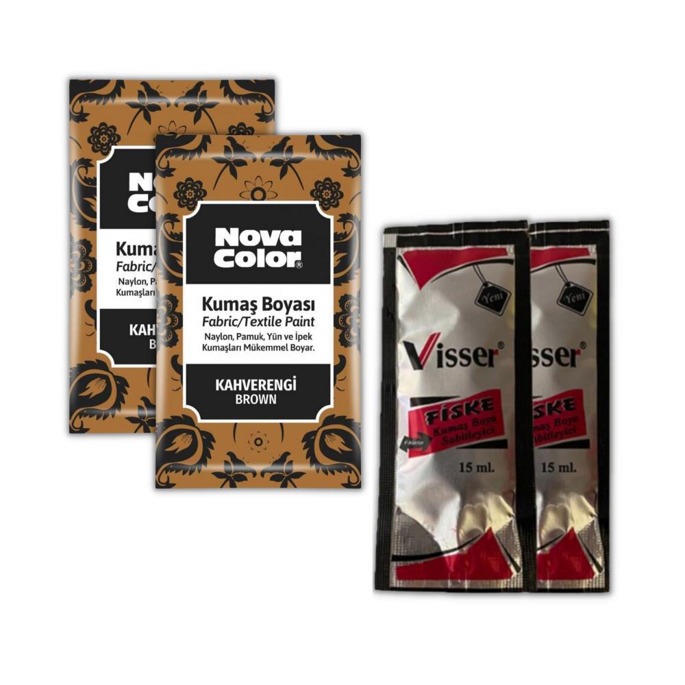 Ürün Adı: Nova Color Kahverengi toz kumaş boyası 12 gr 2 adet Visser Kumaş Sabitleyici Fiske 15 ml 2 adet