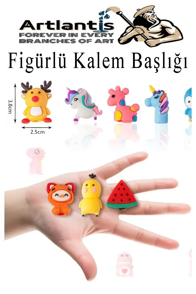 Hayvan Figürleri dinozor, tavşan, zürafa, tek boynuzlu at, alpaka, arı, balina, havuç, patlıcan vb. gibi sevimli ve canlı zengin stillere sahiptir ve kaleminize büyüleyici bir görünüm kazandırır.
