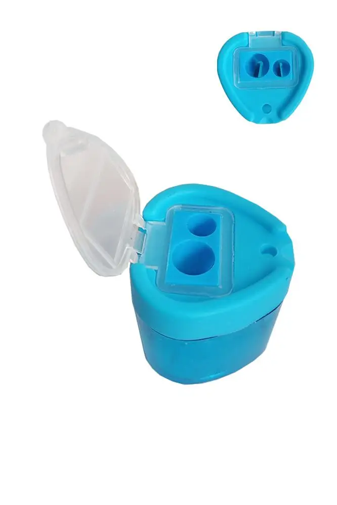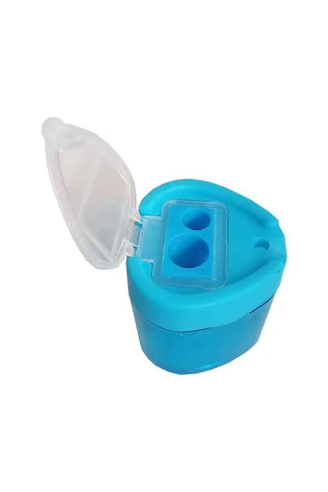 Ürün Adı: Kalemtıraş Çift Gözlü Üçgen Mavi 1 Adet Hazneli Kalemtraş Canlı Renkler Standart Kalem Açacağı Jumbo Kalem Açacağı