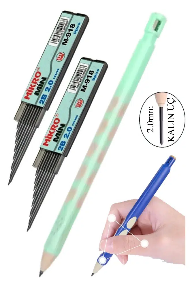 Ürün Adı: Kalın Uçlu Versatil Kalem 2.0 mm Açık Yeşil 1 Adet ve 2.0 Mm Kalın Uç Siyah 2 Adet Kalın Uçlu Mekanik Kalem