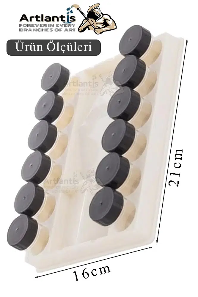 Ürün Adı: Kapaklı Şişe Resim Paleti 12 li 1 Paket Şişeli Boya Palet Kabı Siyah Kapaklı Godeli Sanatsal Plastik Palet ve Saklama