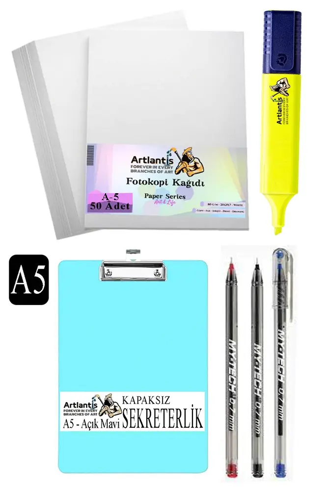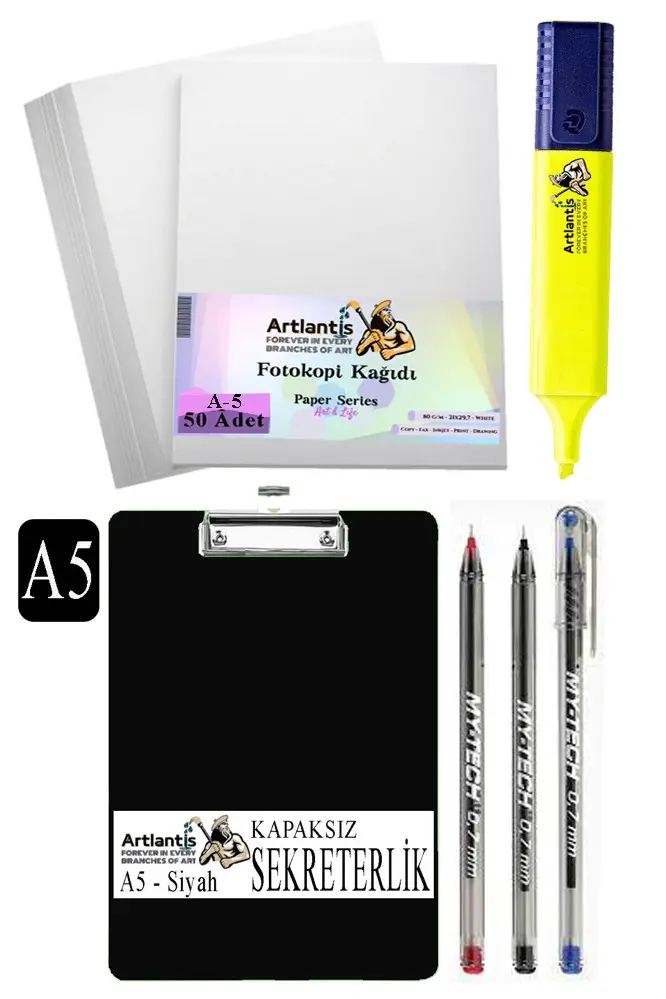 | Etiketler | Kapaksız Sekreterlik A5 Tükenmez Kalem 3 Renk A5 Beyaz Fotokopi Kağıdı 50 Adet Fosforlu Kalem Sarı Ofis Büro Okul |