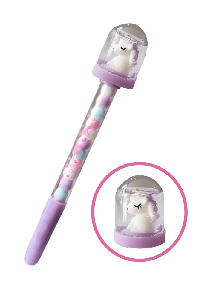 Ürün Adı: Kar Küreli Jel Tükenmez Kalem Mor 1 Adet Kar Küreli Ponponlu Süslü Tükenmez Kalem Hediye Kalem Sevimli Kalem