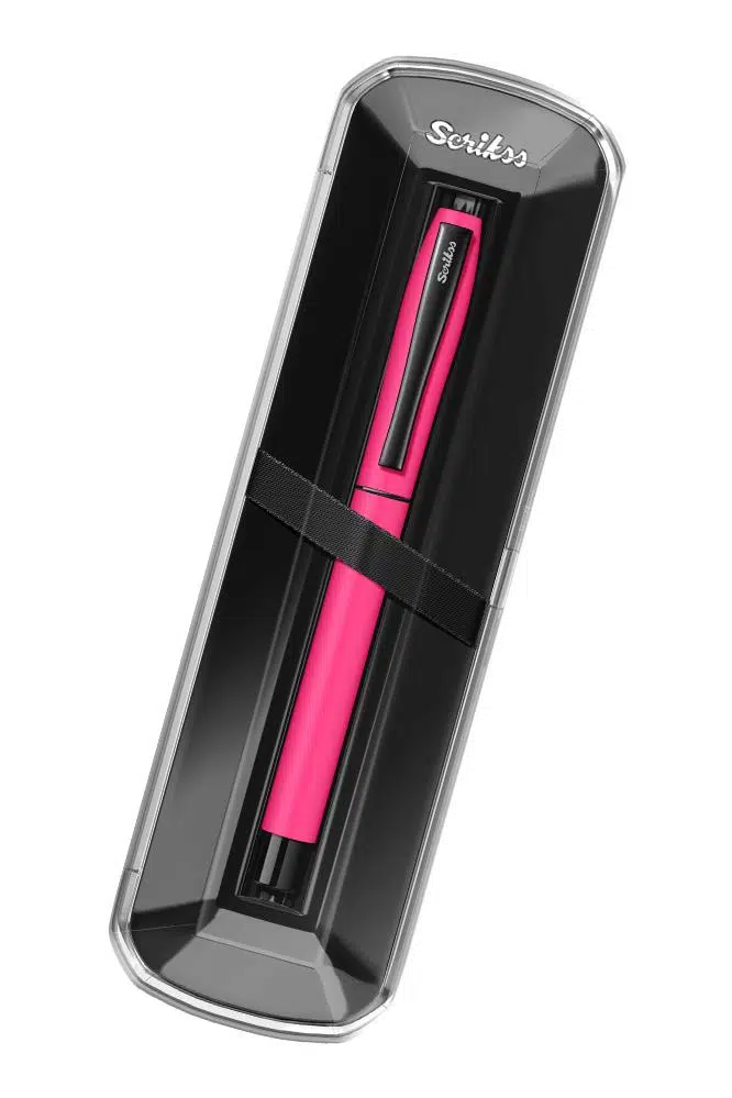 - Scrikss Karnaval Siyah Kristal Kutu Roller Kalem Pembe alüminyum gövde ve kapak.