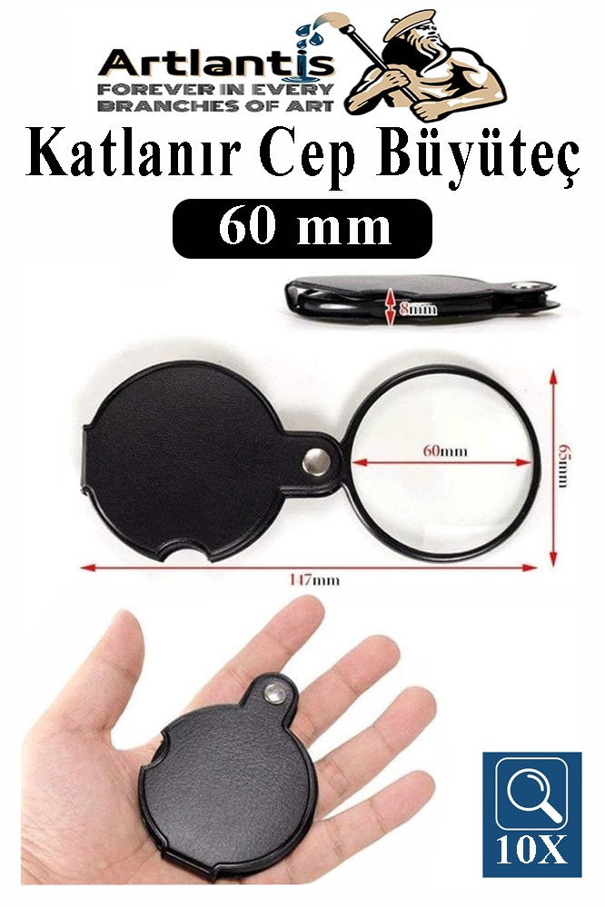 Ürün Adı: Katlanır Cep Büyüteç 60 mm 1 Adet 10X Büyütme Lens Cepte Taşınan Optik Lens Mercek Okuma Büyüteci Mini Cep El Büyüteci