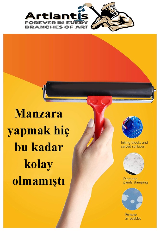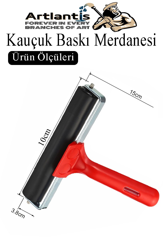 Ürün Adı: Kauçuk Baskı Merdanesi 10 cm Metal 1 Adet Plastik Linol Baskı Merdanesi Silindir Rulo Merdane Vinil Baskı Yapıştırma