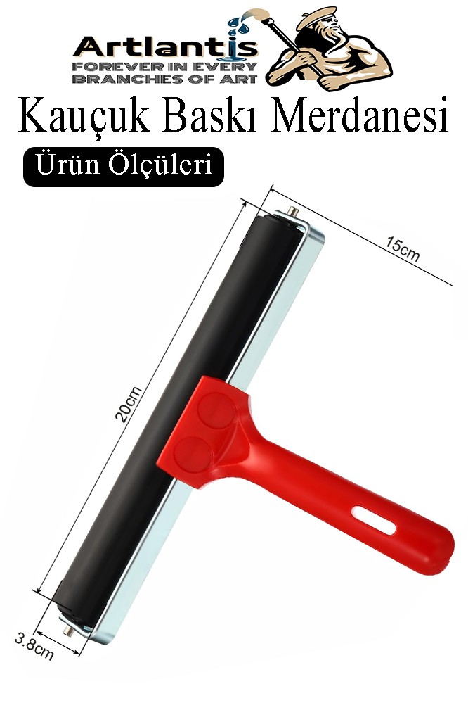 Ürün Adı: Kauçuk Baskı Merdanesi 20 cm Metal 1 Adet Plastik Linol Baskı Merdanesi Silindir Rulo Merdane Vinil Baskı Yapıştırma