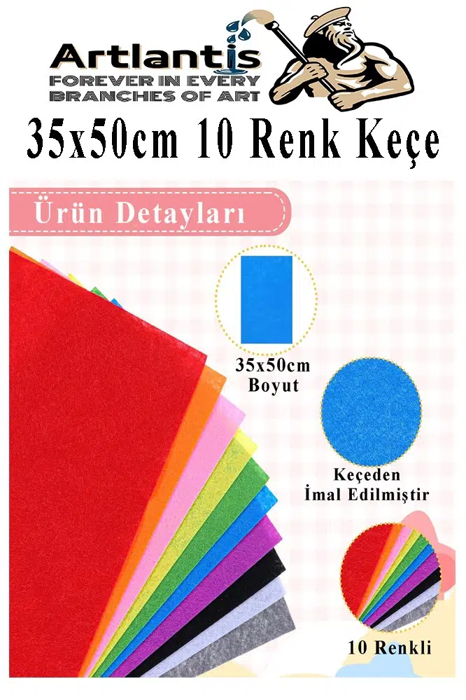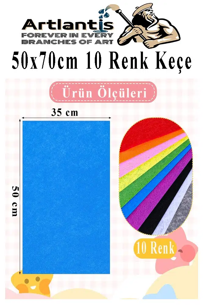 Ürün Adı: Keçe 35x50 cm 10 Renk 1 Paket 2.0 mm Renkli Hobi Keçesi Elişi Keçe Kumaşı Anasınıfı Kreş Okul Öncesi El Sanatları