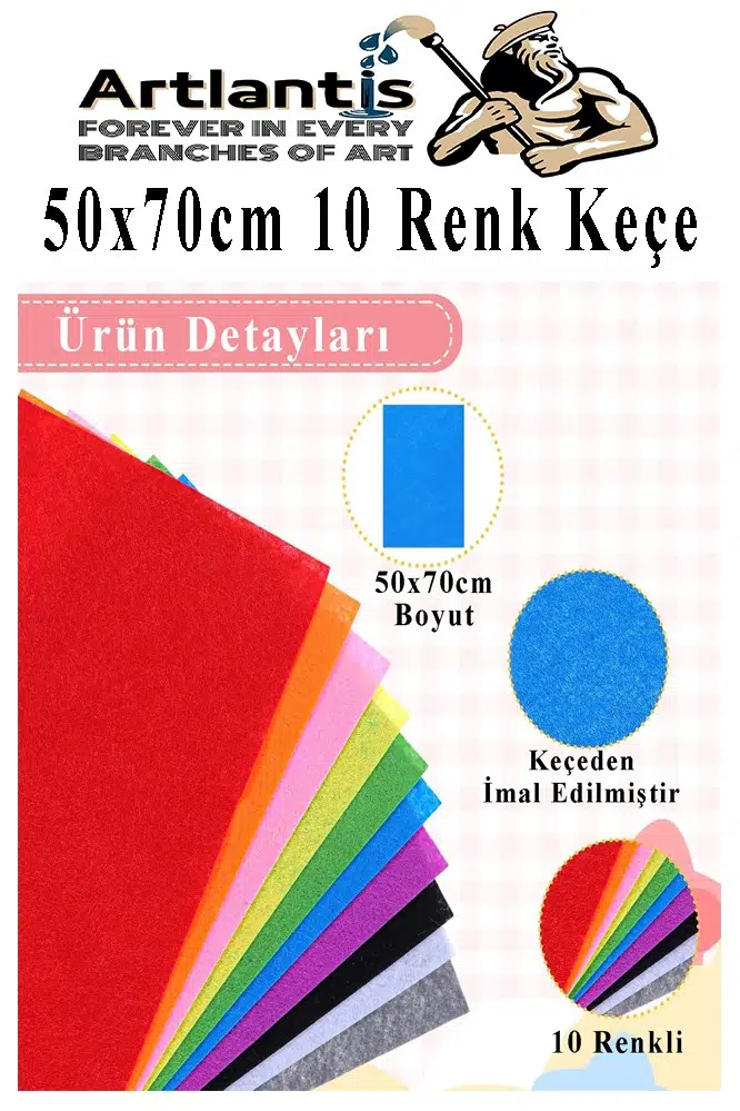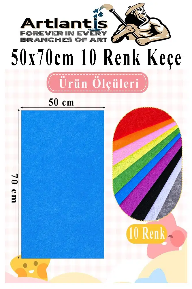 Ürün Adı: Keçe 50x70 cm 10 Renk 1 Paket 2.0 mm Renkli Hobi Keçesi Elişi Keçe Kumaşı Anasınıfı Kreş Okul Öncesi El Sanatları