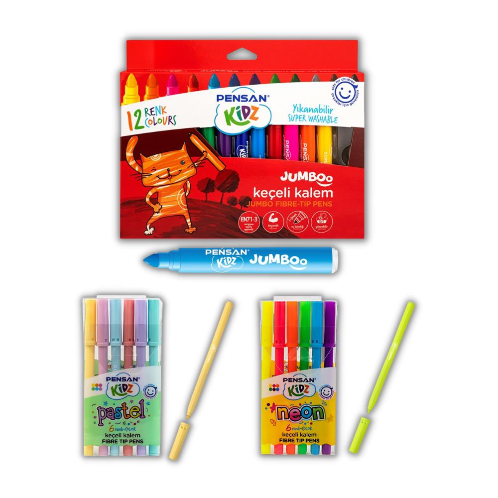 Ürün Adı: Pensan 6 Neon - 6 Pastel ve 12 Renk Jumbo Keçeli Kalem Pensan Keçeli Kalem
