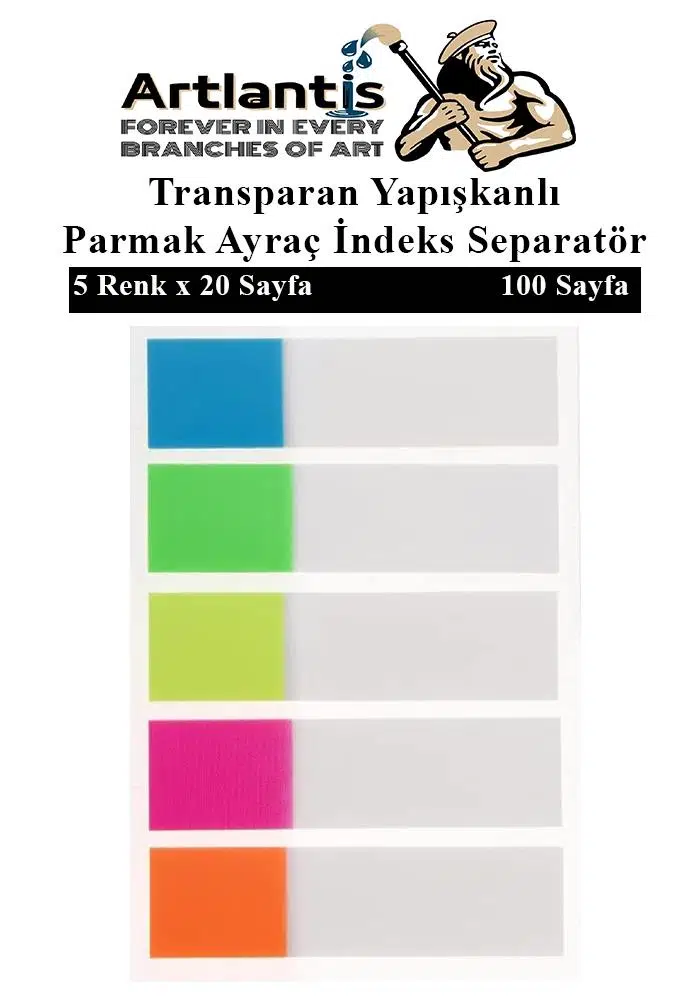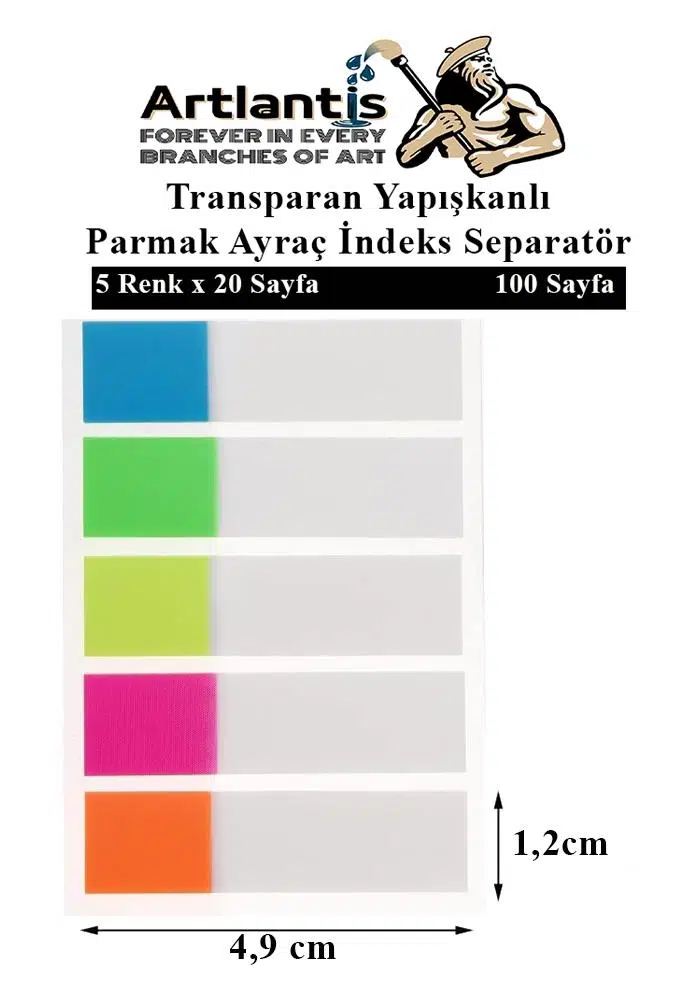 Ürün Adı: Artlantis Transparan Parmak Ayraç İndeks Seperatör 5 renk 100 lü 1 Paket 1,2 x 4,9 cm
