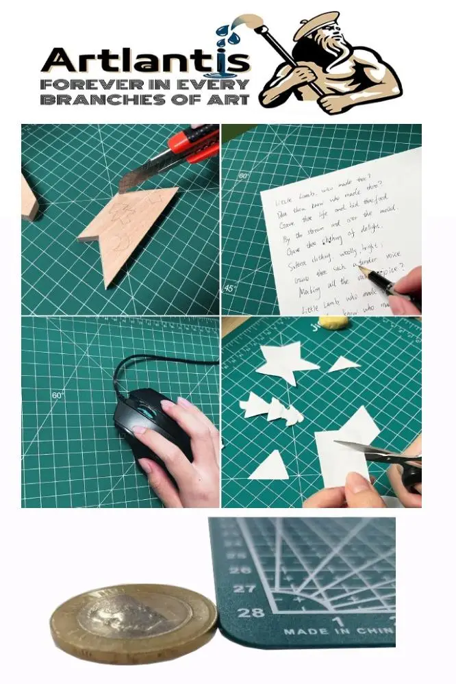 Ürün Adı: Kesim Matı A2 Kretuar Seti ve Çelik Cevel 30 Cm 1 Adet 45x60 cm Çift Taraflı Çizim Matı Kesme Madı Kesim Tablası Kesim Altlığı