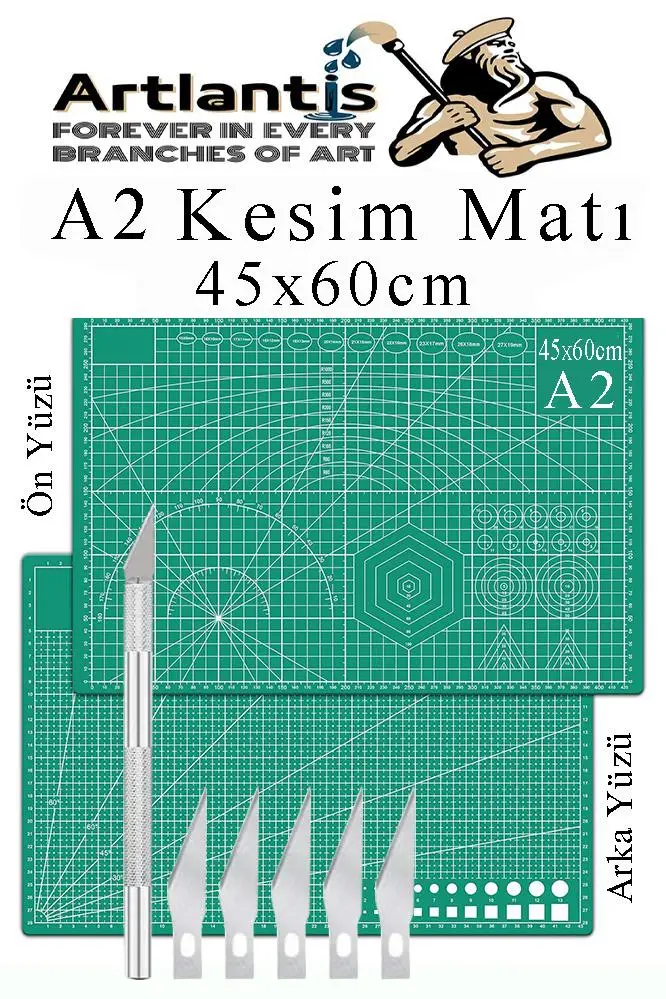 Ürün Adı: Kesim Matı A2 ve Kretuar Seti 1 Adet 45x60 cm Çift Taraflı Çizim Matı Kesme Madı Kesim Tablası Kesim Altlığı