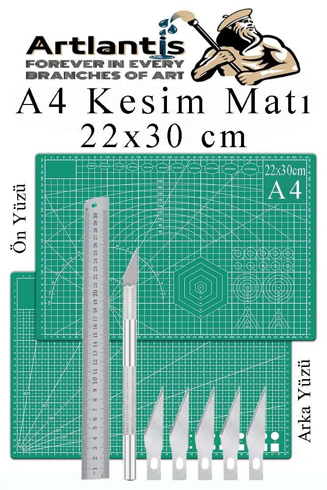 Ürün Adı: Kesim Matı A4 Kretuar Seti ve Çelik Cevel 30 Cm 1 Adet 22x30 cm Çift Taraflı Çizim Matı Kesme Madı Kesim Tablası Kesim Altlığı