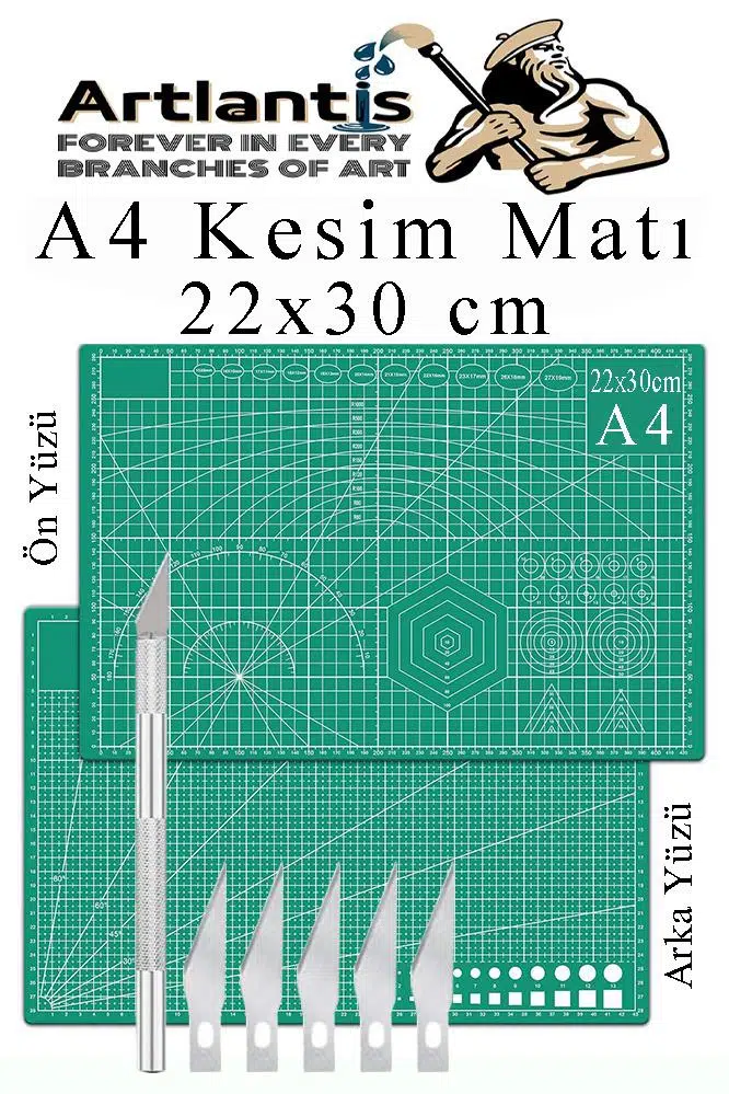 Ürün Adı: Kesim Matı A4 ve Kretuar Seti 1 Adet 22x30 cm Çift Taraflı Çizim Matı Kesme Madı Kesim Tablası Kesim Altlığı