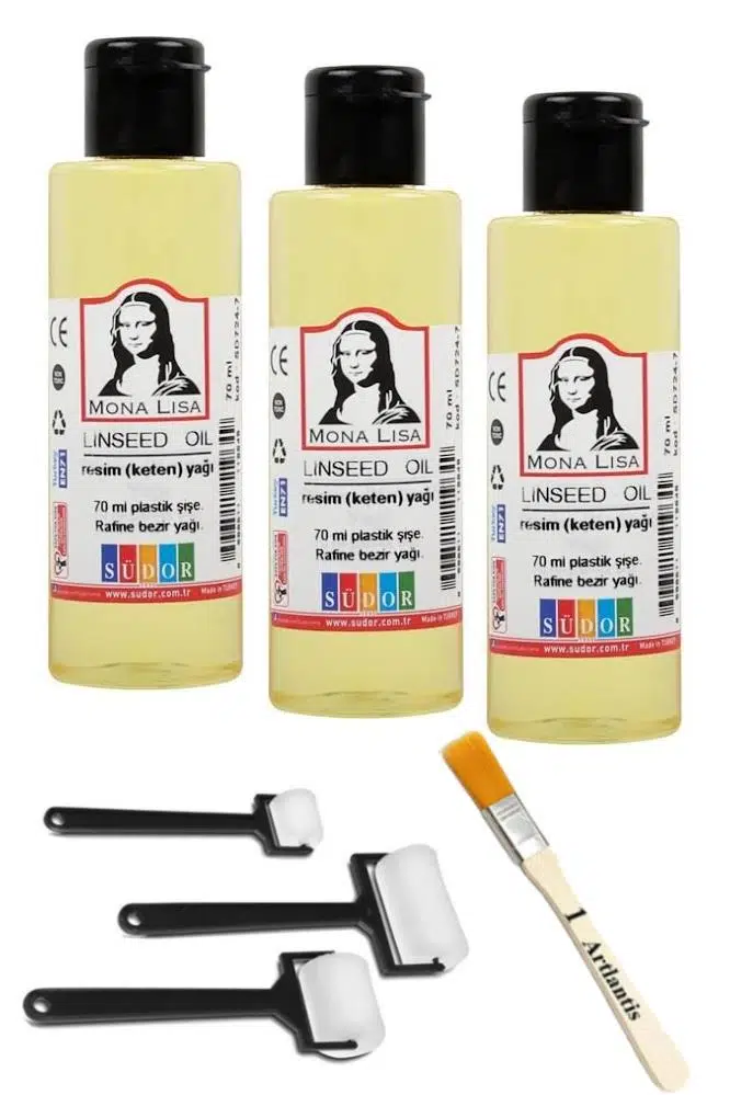 Ürün Adı: Keten Yağı 70ml 3 Adet Zemin Fırçası ve Rulo Fırça Resim Yağı Monalisa Rafine Bezir Yağı Yağlı Boya İncelticisi Yağlı Boya Yardımcı Malzemesi