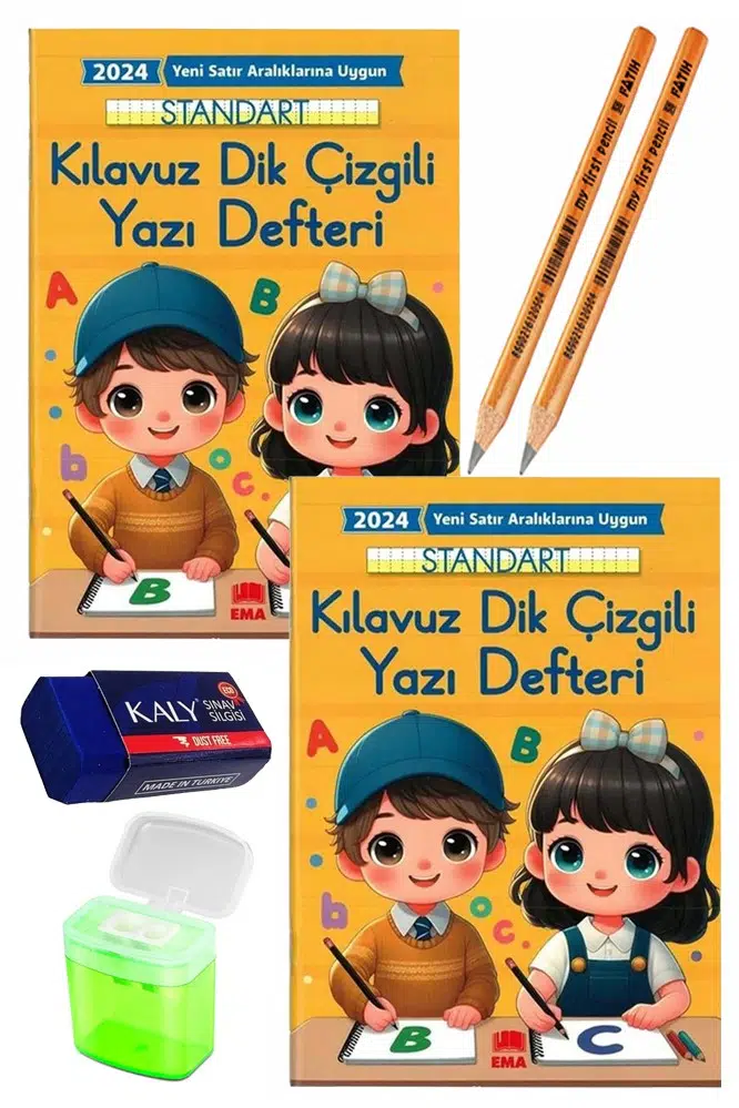 Ürün Adı: Kılavuz Dik Çizgili Güzel Yazı Defteri Orta Boy Fatih Jumbo Kurşun Kalem Sınav Silgisi Kalemtraş Yeni Müfredat Yazı