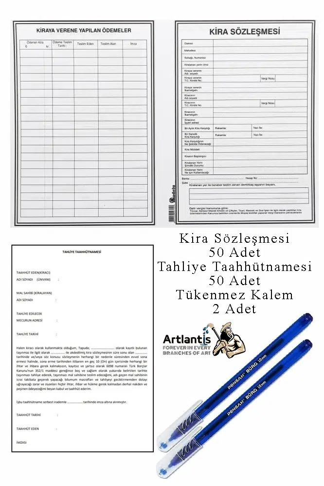 Ürün Adı: Kira Sözleşmesi ve Tahliye Tahütnamesi 50 Adet Tükenmez Kalem Kira Kontratı ve Tahliye Taahünamesi