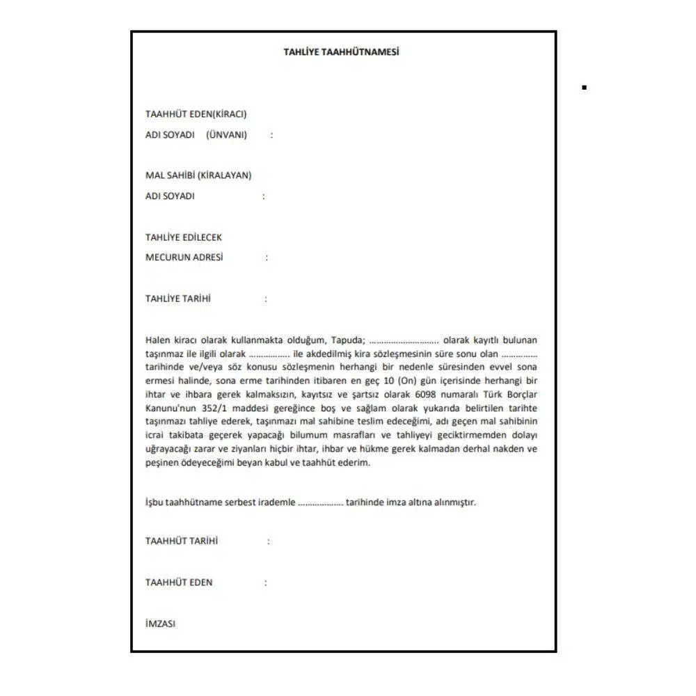 - İşyeri ve Konutlar için Kira Tahliye Taahhütnamesi