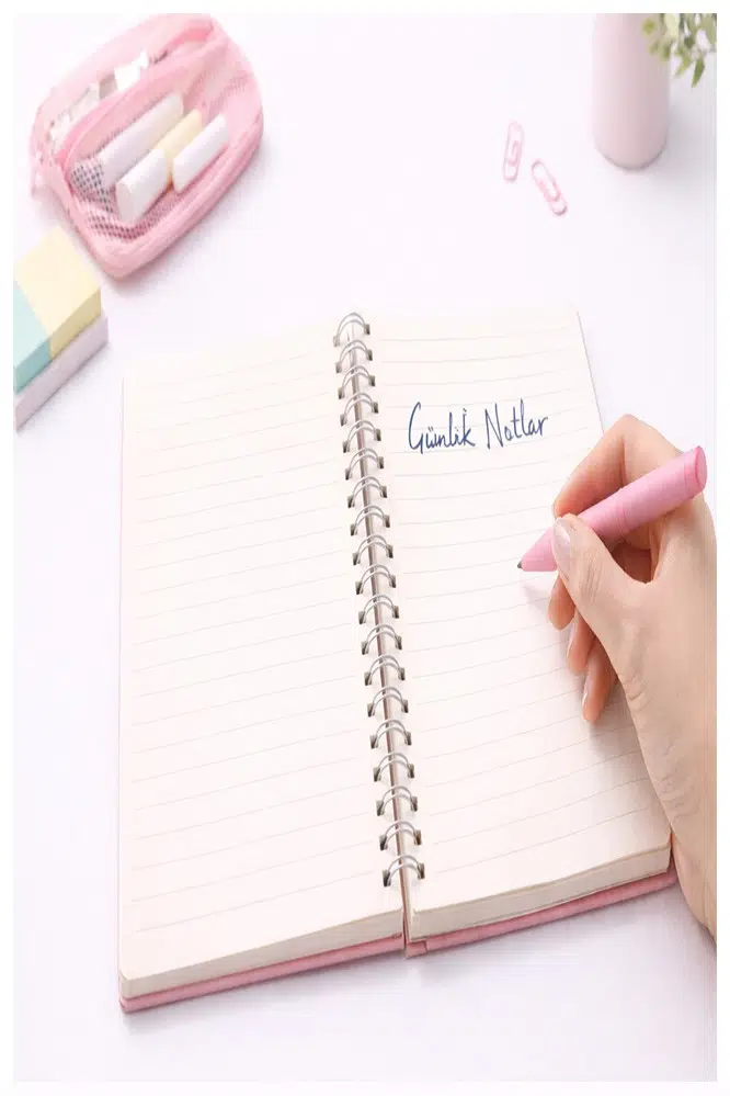 Zarif pembe tonları ve şık tasarımıyla dikkat çeken bu defter, masa üzerinde hoş bir görünüm oluştururken aynı zamanda motivasyonunuzu artırır. Sağlam spiralli yapısı sayesinde sayfalar kolayca çevrilir ve uzun süreli kullanım sağlar.