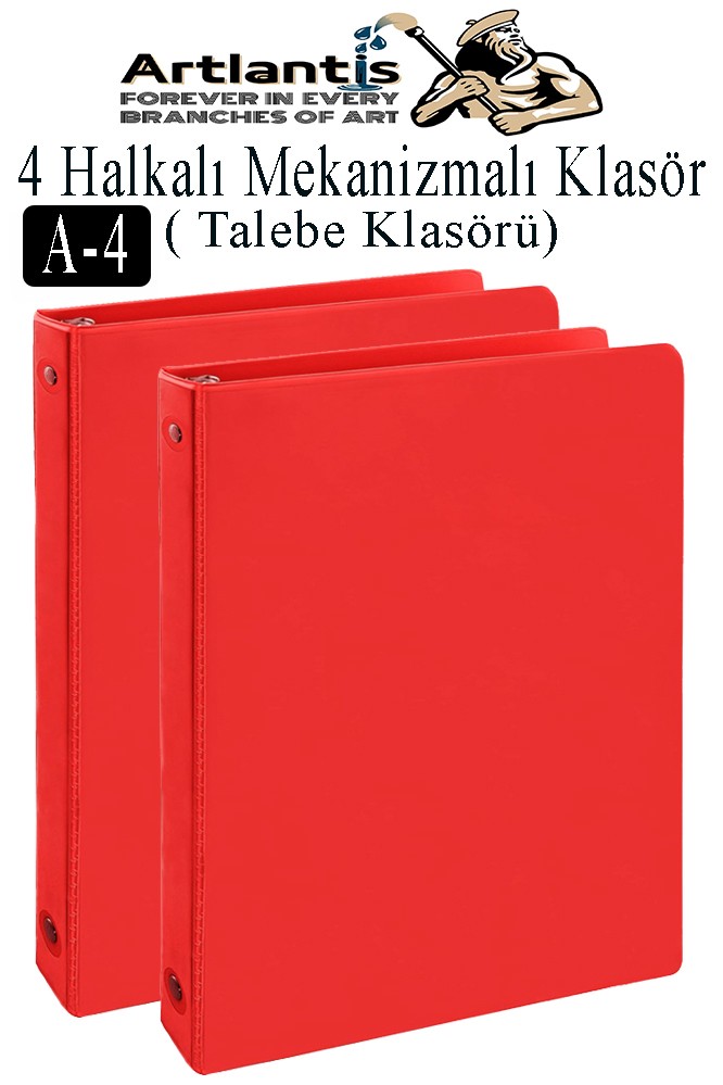 Ürün Adı: Kırmızı 4 Halkalı Klasör 2 Adet A4 PVC Öğrenci ve Ofis Tipi Evrak Sunum Klasörü İç Cepli Otomatik Mekanizmalı Büro Okul
