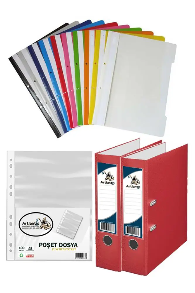 Ürün Adı: Kırmızı Büro Klasörü Telli Dosya ve Poşet Dosya Seti 2 Adet Büro Klasörü 10 Renk Telli Dosya 100 Adet Poşet Dosya