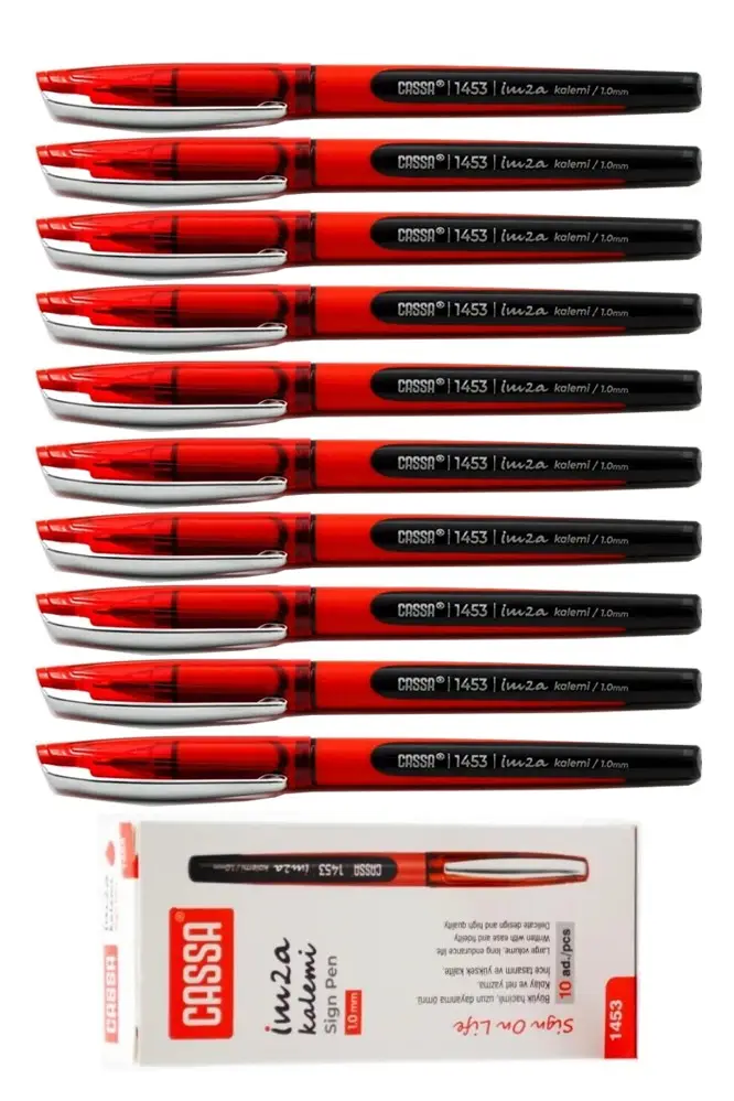 Ürün Adı: Kırmızı İmza Kalemi 10 Adet 1.00 mm Kalın Uçlu İmza Pilot Kalem Ekonomik Kaliteli Cassa 1453 İmza Kalemi