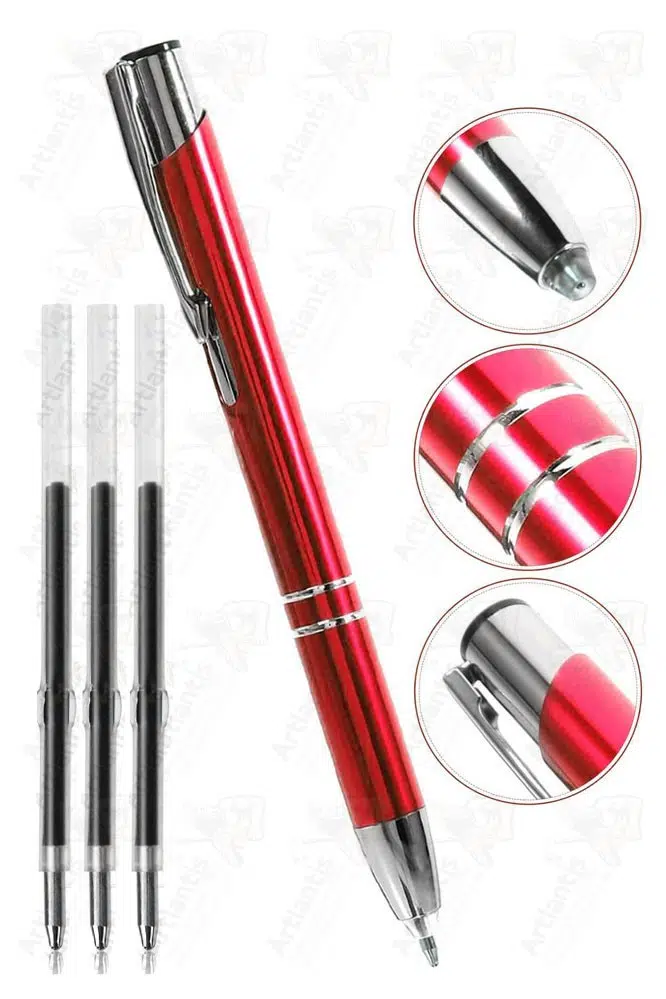 Ürün Adı: Kırmızı Kısa Boylu Metal Tükenmez Kalem 1 Adet Yedek Uçlu Mavi Renkli Cep Kalemi Tükenmez Basmalı Mikro 1001 Mekanizmalı